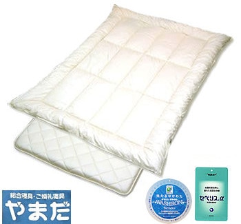 防ダニ・抗菌防臭なかわた、ウォッシャブル加工生地使用。日本製。やまだオリジナル洗える寝具シリーズ ※3層固敷ふとんの洗濯はお避けください。「