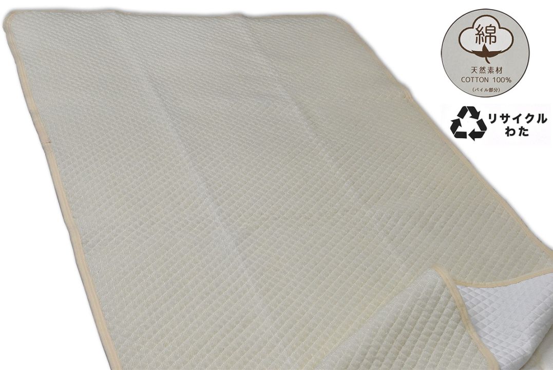 ナチュラル綿パイル敷きパッド■ 表面のパイル部分は天然素材 綿100%。■ 中わたにリサイクルわたを50%使用。■ 裏面は全面すべり止め加工