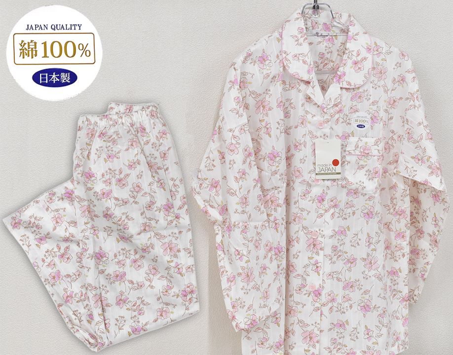 レディース長袖パジャマ 綿ドビー花柄ピンク 300201H 日本製