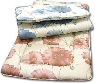 テイジンのマイティトップII ad ECO なかわた素材使用。固わたはソフトなタイプを使い、取扱いやすい3層敷きふとんです。*植物を図案化し