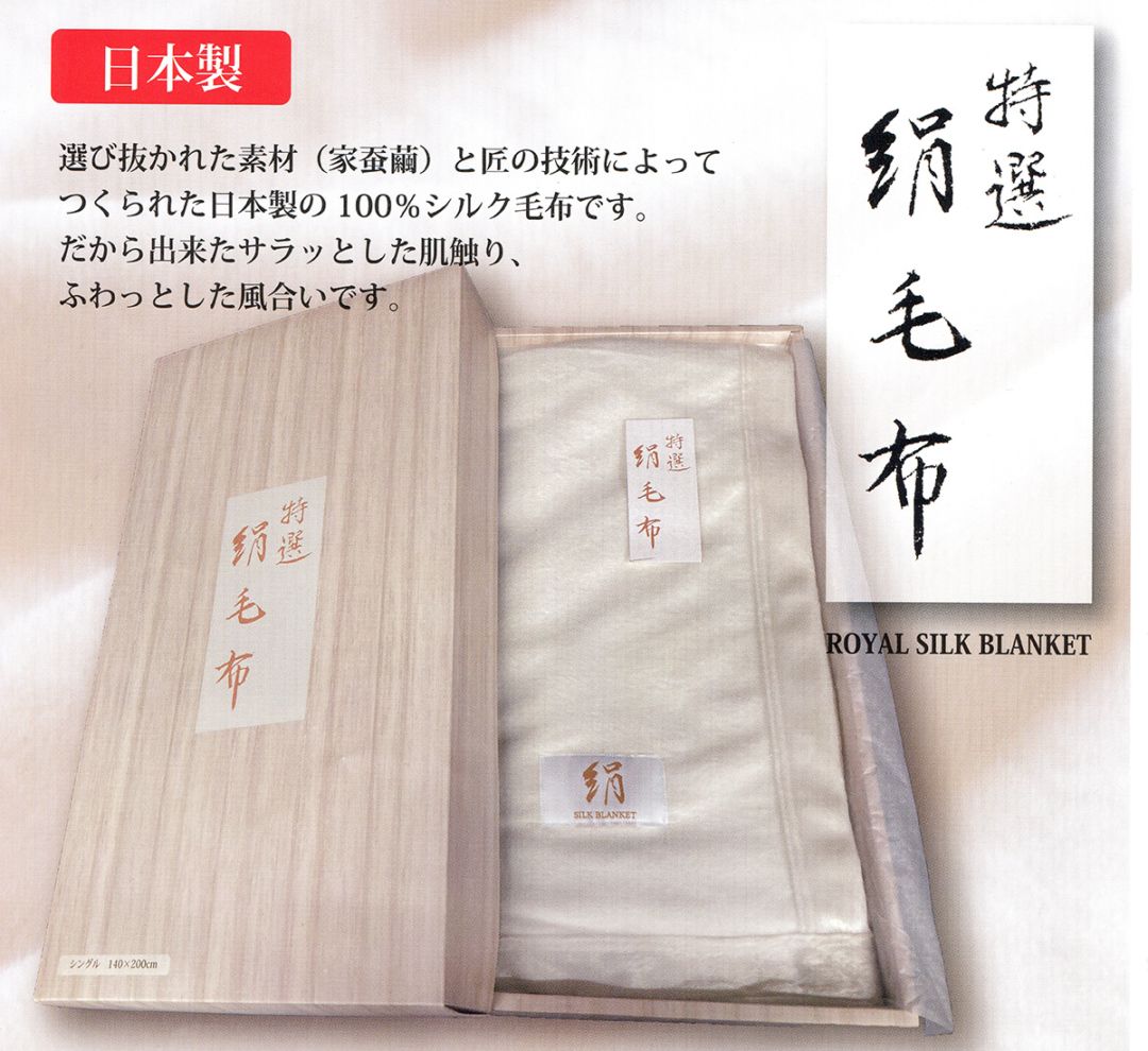 特選 絹毛布 シングル (毛羽部分シルク100%) シルク毛布