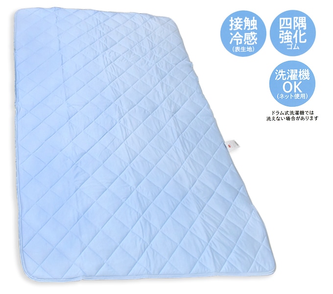 接触冷感 敷パッド■ 裏面メッシュで通気性バツグン!■ 洗濯機で丸洗いOK!お手入れかんたん。■ 四隅ゴム付きでズレずに簡単着脱。表面に触れ
