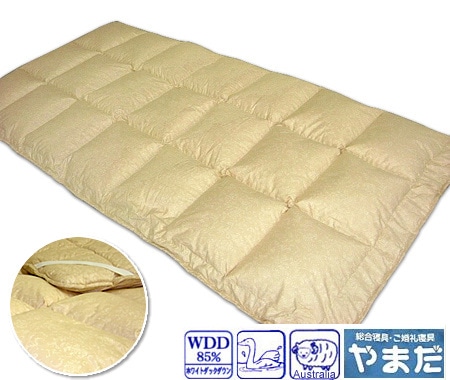 ■ベッドパッド■ かさ高、暖かベッド用敷ふとん。通常、掛ふとんに使用されている羽毛がたっぷり入ってふんわりした寝ごこち!下層にはオーストラリ