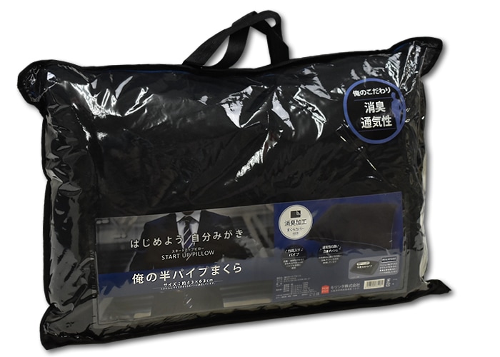 俺のこだわり 消臭・通気性 半パイプ枕「 俺の半パイプまくら 」 消臭加工のシンカーパイル枕カバー中のまくら表面は通気性のよい立体メッシュ生