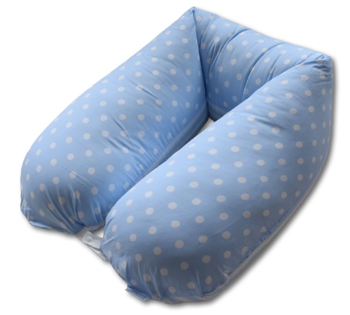ヨーロッパのベビールームをイメージしたデザイン。上品なブルードットとストライプのデザイン。 ランデブー スリーウェイ マルチクッション ベ