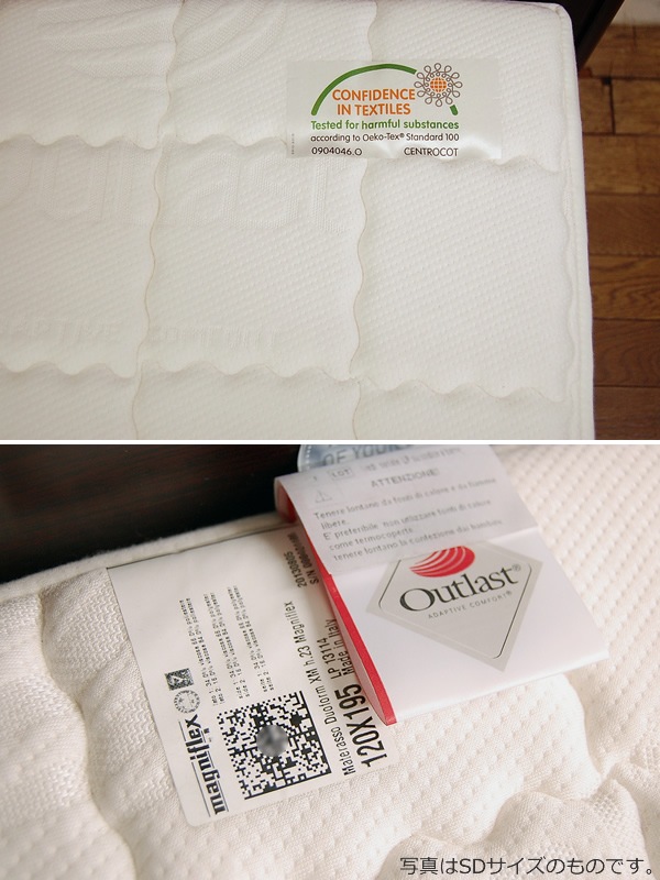 イタリア製、メーカー12年保証付生地・素材レーヨン80%・ポリエステル20%、アウトラスト加工、エリオセルMFパディング芯材:ポリウレタンフォーム(エリオセルMF3cm、エリオセルソフト18cm)カラー1