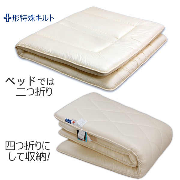 コンパクトにたためる4ツ折りが可能な特殊キルト仕上げ。