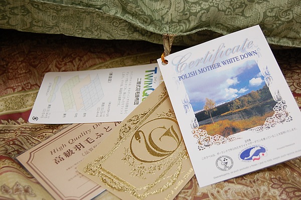 このロイヤルゴールドラベルの付いている羽毛ふとんは、日本羽毛製品協同組合の品質基準に合格したものです。