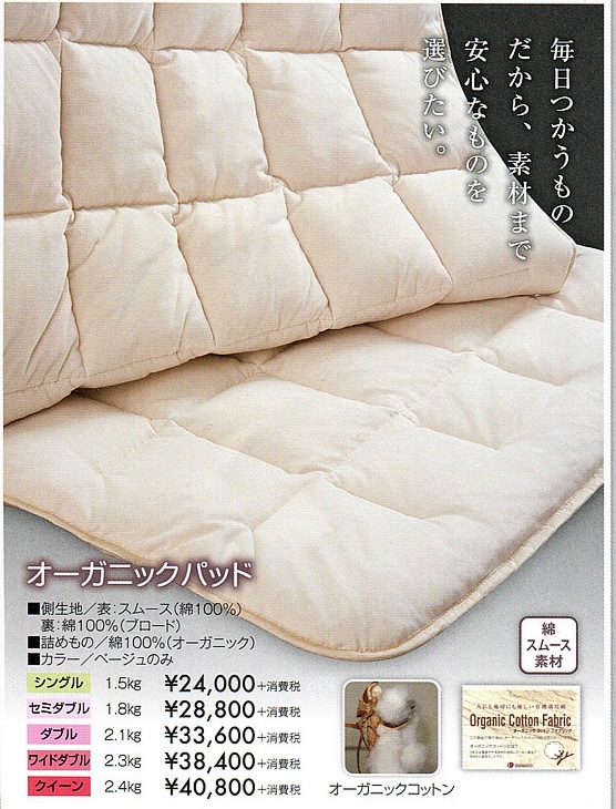 裏生地:綿100%(ブロード)中わた:綿100% オーガニックコットン)、2.3kg入カラーベージュ