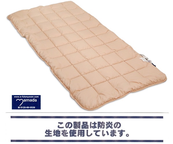 ふとんにカバーをかけてお届けいたします。お気軽にお申し付けくださいサイズJr:85×185cm、日本製生地・素材側地:ポリエステル100%(防炎スーパーエクストラ)、格子キルト(50マス)中綿:ポリエステル100%(防炎エクスタ)、0.8kgカラーベージュ