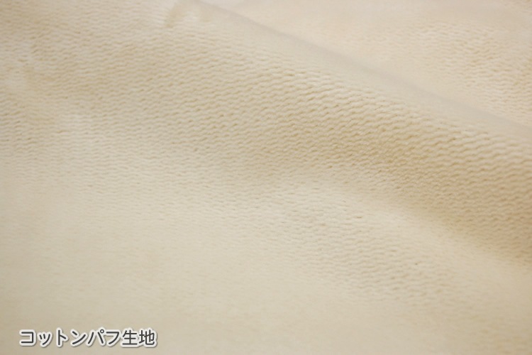 あたたかな毛羽部分は綿100%のコットンパフ(基布アクリル)を使った冬のぬくもりBOXシーツ。コットンパフは、パイルが均一に織られているため、とても肌ざわりがよく、なめらかな生地です。