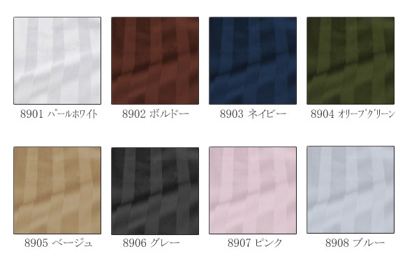 品質: 綿100% ( サテン織、60番手、打込本数260 ) ストライプ幅(16㎜:21㎜)