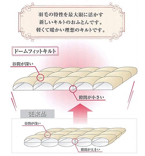 軽くて暖かい理想のキルト。羽毛の特性を最大限に活かす新しいキルトのおふとんです。