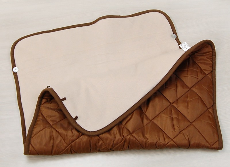 オーラ蓄熱キルトシリーズは、生綿加工によりふわっとした感触を出しているので、掛けるのにより適しています。ひざに掛けて使う、足ぶくろのように包んで使う、肩に掛けて使うといったかたちで多目的な使用ができます。(キルトの中わた量 約400g/m² )