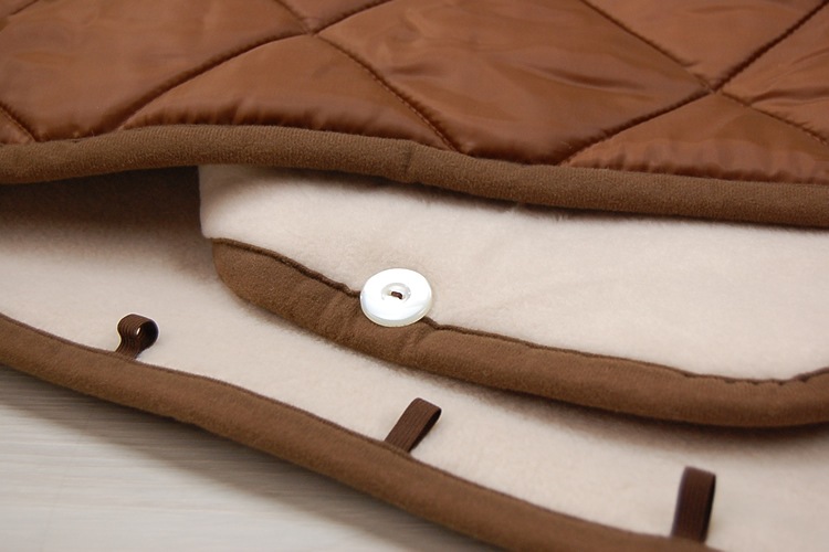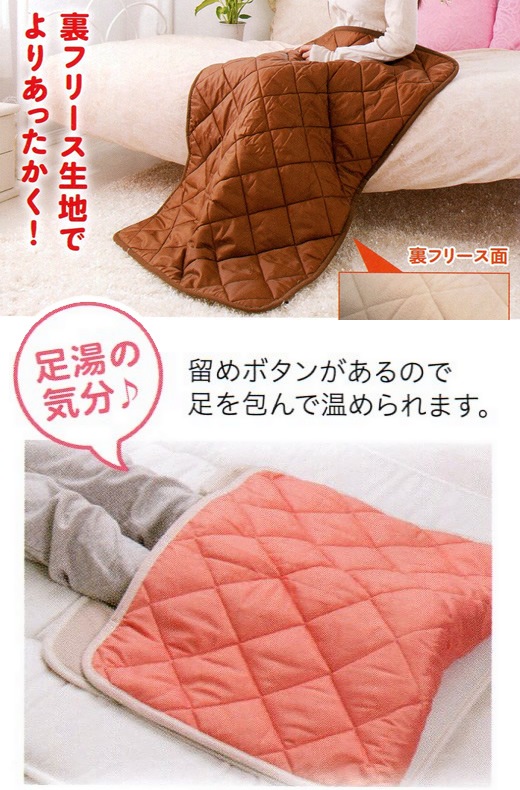 ■ 裏面フリース生地で、留めボタンがあるので折り返して足を包んで温められます。ポカポカ足湯気分♪
