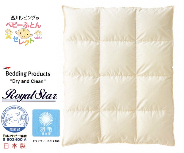GORE®ベビー羽毛ふとん「ロイヤルスター®」は日本アトピー協会推薦品です。(本製品はアレルギー諸疾患の改善を保証するものではありません)GORE®、ゴア®は W.L.Gore&Associates の商標です。サイズ(BB)95×120cm、日本製生地・素材綿100%(ePTFEラミネート加工)日本産羽毛ピュアホワイトダウン90%・フェザー10%、0.30kg入カラーベージュ - 日本産の羽毛
