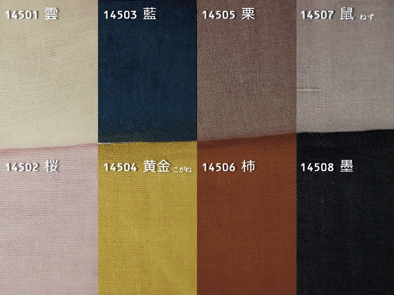 Colors: 雲(KUMO)、桜(SAKURA)、藍(AI)、黄金(KOGANE)、栗(KURI)、柿(KAKI)、鼠(NEZU)、墨(SUMI)、紅(KURENAI)