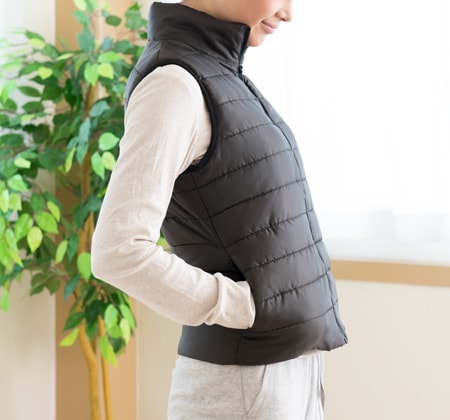 シンプルなデザイン。使いやすいベストで冷え対策!