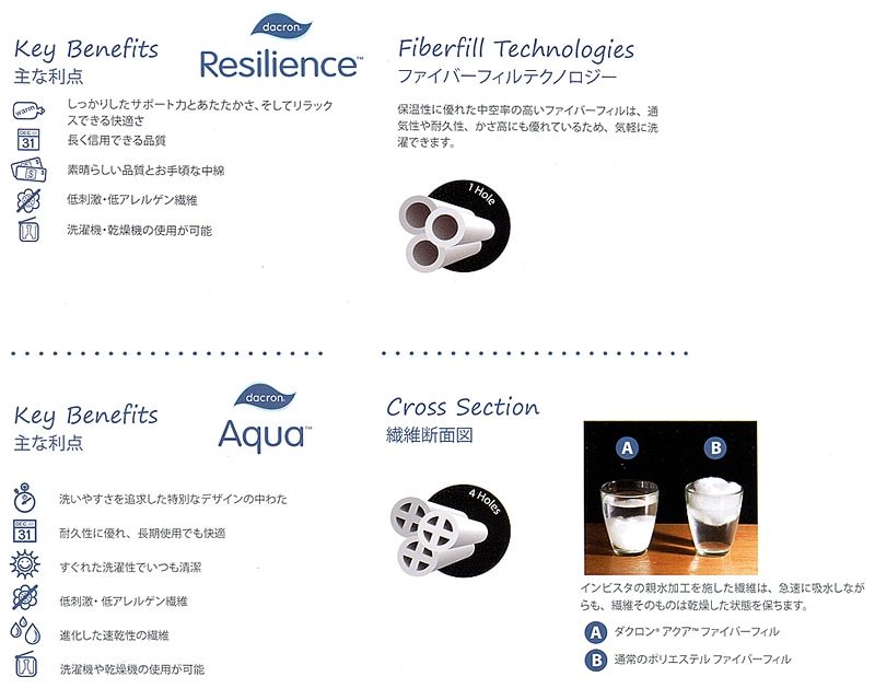 掛・肌・枕は、インビスタ社ダクロン®アクア中綿使用。