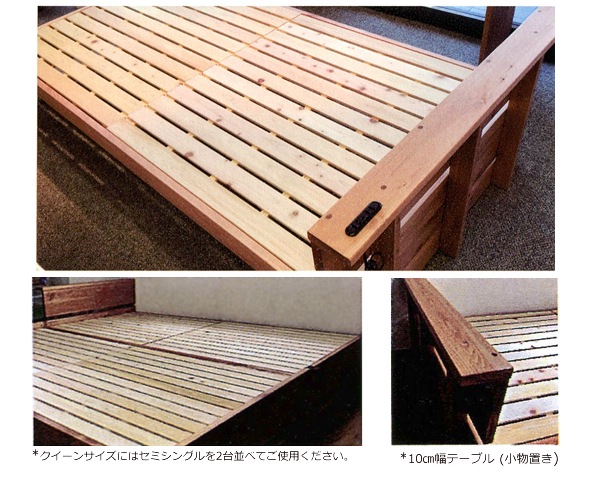 国産材(美作ひのき)を使ったベッドフレーム。「すのこ」を縦型に配置。通気性抜群のベッドです。