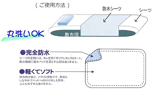 防水機能に優れベッドを濡らす心配がありません。※吸水性がないため横漏れにご注意ください。