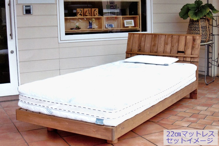 国産材(美作ひのき)を使ったベッドフレーム。「すのこ」を縦型に配置。通気性抜群のベッドです。