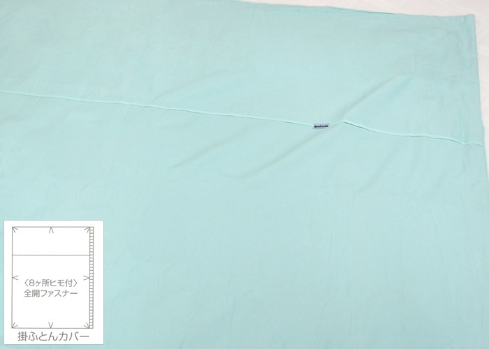 ご家庭でお洗濯できます。サイズS:150×200cm、日本製生地・素材組成:綿100%8ヵ所ヒモ付き、全開ファスナーカラー4