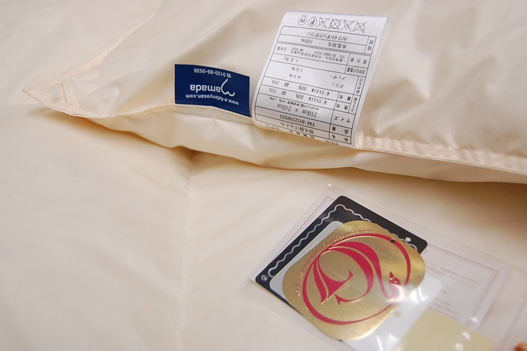 このニューゴールドラベルの付いている羽毛ふとんは、日本羽毛製品協同組合の品質基準に合格したものです。