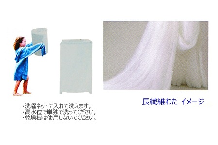 長繊維わたは、繊維が長くつながっているためホコリが出にくく、わた切れや吹き出しも起こりにくくなっています。マイクロわた入りでボリューム感にも優れています。