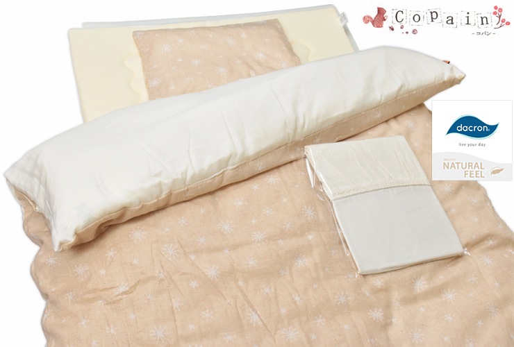 敷ふとんが2枚組なので1枚1枚が軽量でお出掛け時のときの持ち運びにも便利です。季節に応じて厚掛または薄掛と合せてお昼寝ふとん代わりにもなります。● Copain/コパン ●掛ふとん 95×120 cm側生地:ポリエステル80%・綿20% 中わた:Dacron® NATURAL FEEL Down-like Fiberfill