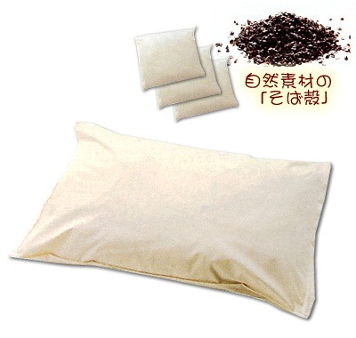 - 昔ながらのそば殻は、吸放湿性にすぐれ熱がこもりません。固さもほどほどで、汗をかく頭に適した通気性の良さをもそば殻ならではです。
