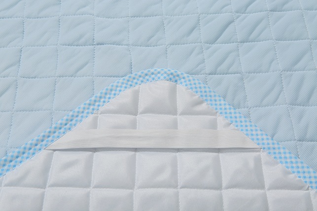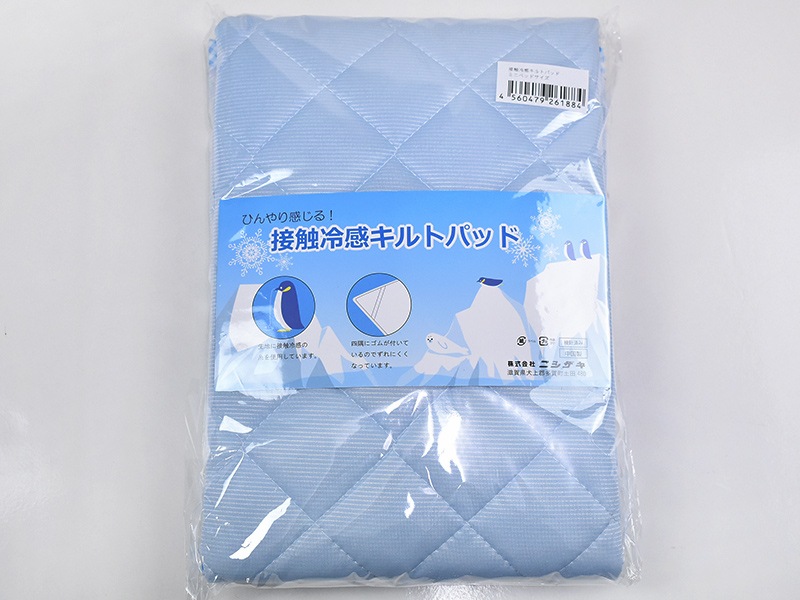 ナイロンを使用し、ほどよくひんやりとした冷感素材のパッドです。やわらかくなめらかな触り心地です。裏面の四隅にはズレ防止のゴム付き。