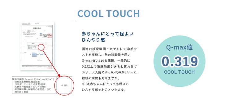 Q-max値 0.319 冷えすぎない赤ちゃんにほどよいひんやり感です。
