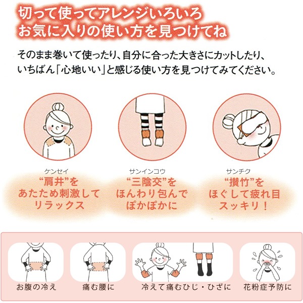 ・冷え性の方、腹巻の中に挟んだり、お腹をあたためてください。