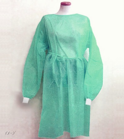 (121×138cm)生地・素材PPスパンボンド不織布(ポリプロピレン100%)、袖口ニット(ポリエステル100%)カラーグリーン