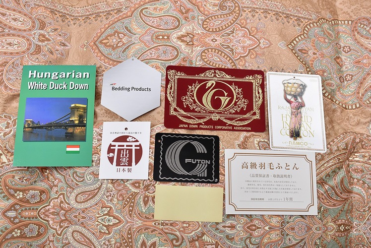 このエクセルゴールドラベルの付いている羽毛ふとんは、日本羽毛製品協同組合の品質基準に合格したものです。
