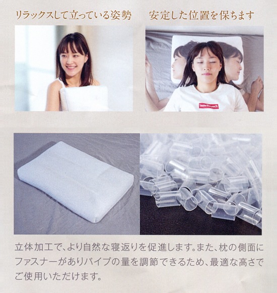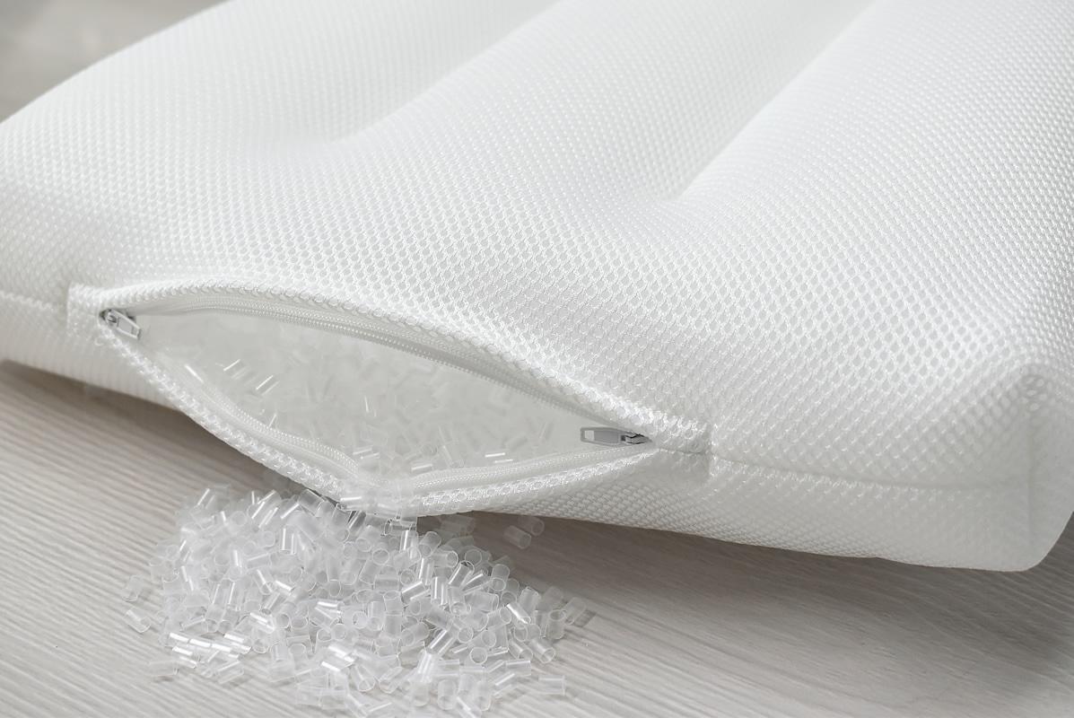 深く沈み込み過ぎるやわらかい枕では、寝返りをするために力が必要になり睡眠が浅くなる可能性があります。この枕は沈みすぎない硬さで、自然な寝姿勢になるよう高さを調節することで、簡単に寝返りができる構造になっています。枕の側面にファスナーがあり、パイプの量を調節できるため、自分に合った最適な高さでご使用いただけます。