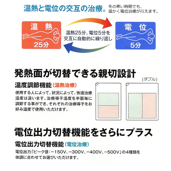 温熱25分、電位5分を交互に自動的に繰り返します。