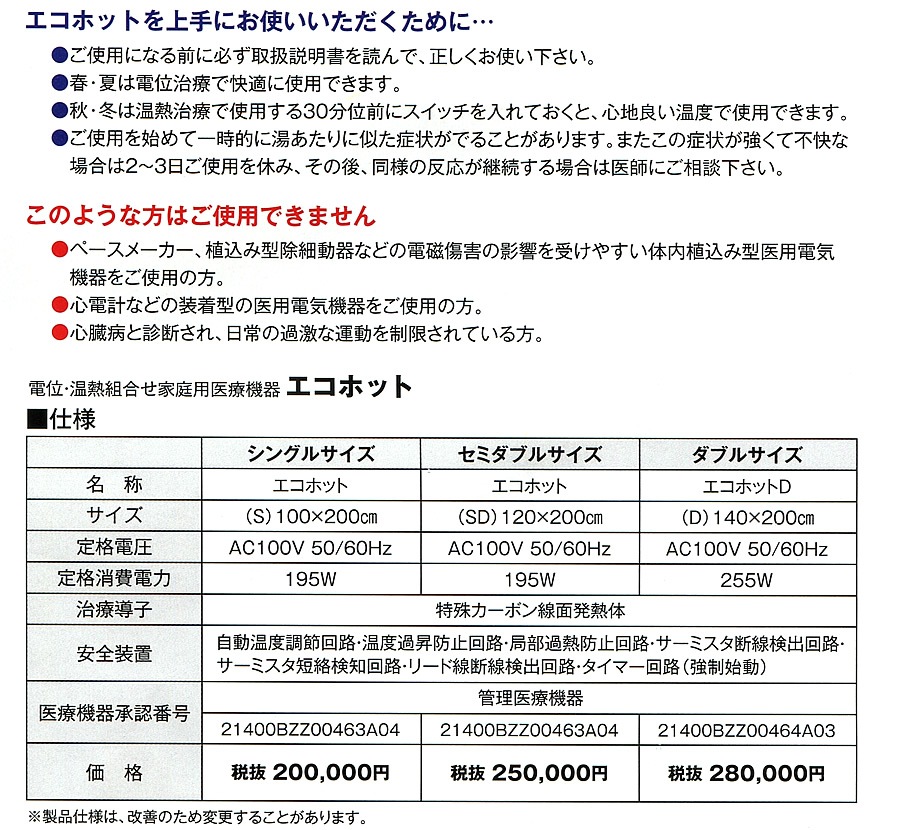 ● ご使用になる前に必ず取扱説明書を読んで、正しくお使いください。サイズD:140×200cm、100V (50/60Hz) 定格消費電力:255W生地・素材側生地:綿生地詰めもの:特殊カーボン面発熱体(電床)、ウレタンフォーム、ポリエステルわた(マイティトップII、ウォーマル)カラーベージュ