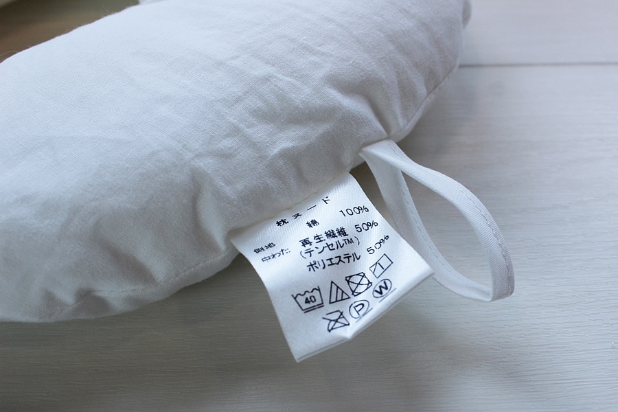 中わたには『優れた吸放湿性』『細菌の成長を妨げる衛生機能』『原料は天然木材パルプ100%』の特徴をもつ素材「テンセル」を使用しています。サステナブルで赤ちゃんのお肌にもやさしい、ふわふわで心地いいベビー枕が完成しました。