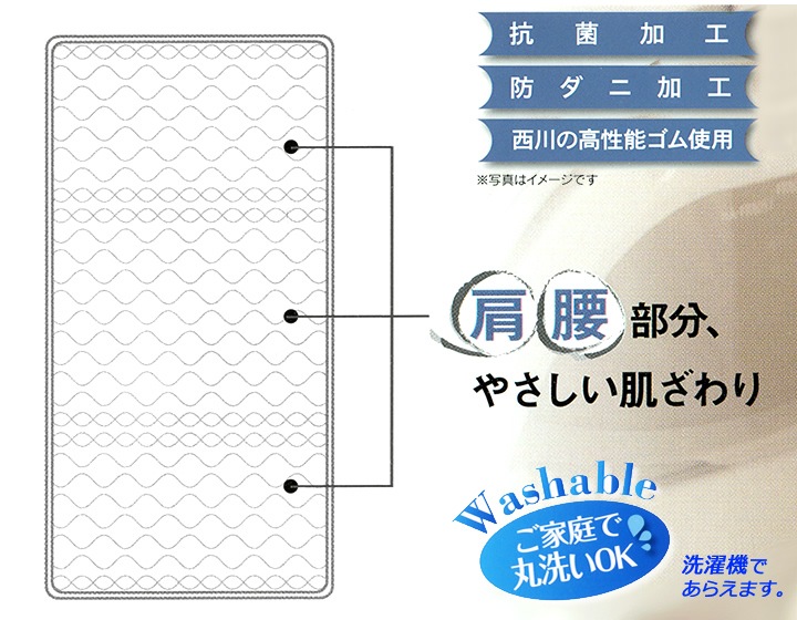 - (シングルサイズ)西川の合繊ベッドパッド、丸洗いOK。