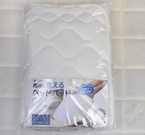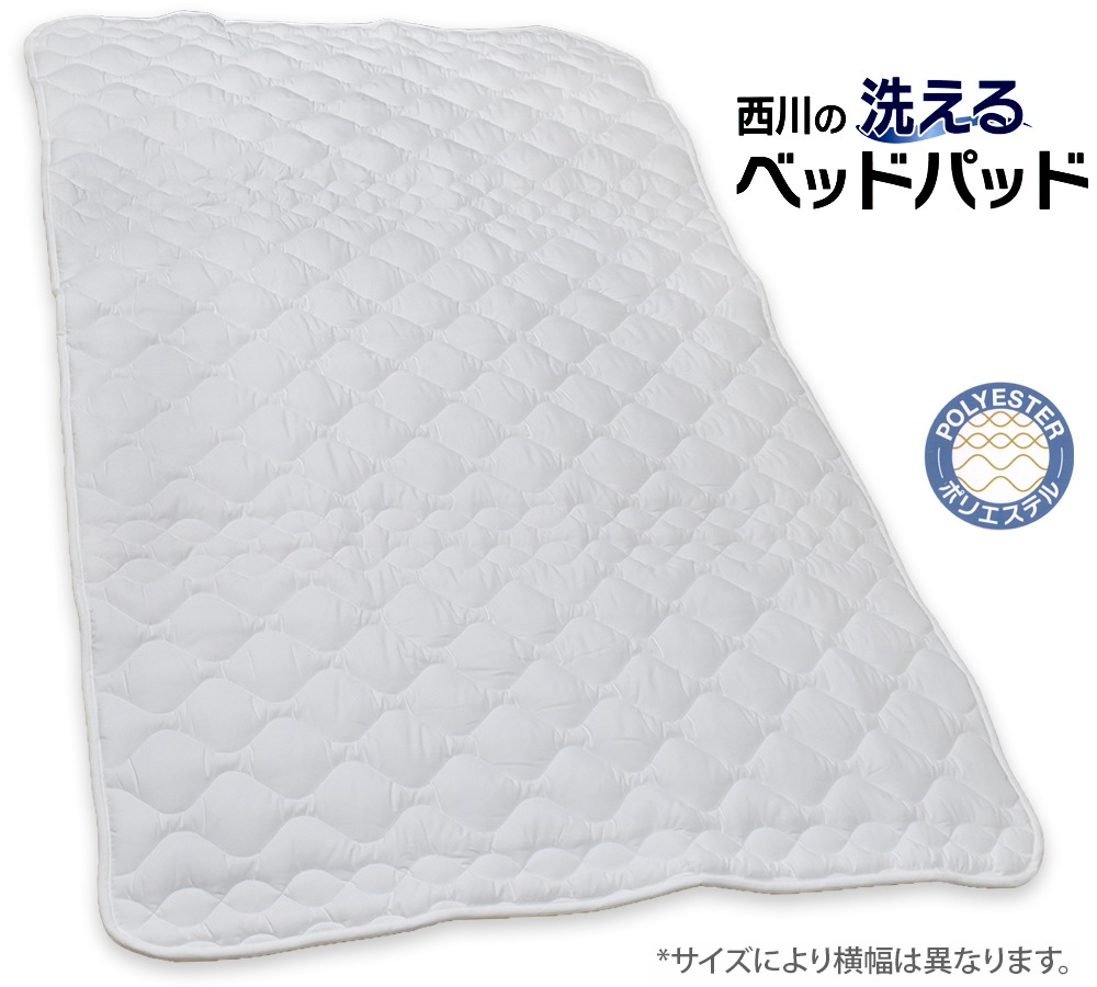 - (ダブルサイズ)西川の合繊ベッドパッド、丸洗いOK。