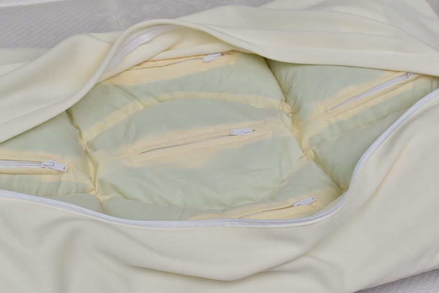 各ブロックにファスナーがついているので、枕が高い場合はファスナーを開けて中材を取り出せます。