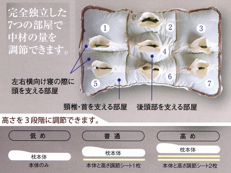 わたしのフィット枕シリーズは、中材の量を自由に増減でき、高さを細かく調節することができます。
