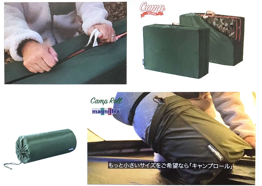 しっかり中厚生地で、Magniflexタグ付き日本製です。サイズキャンプウィング用 80×24×56cm、約300g