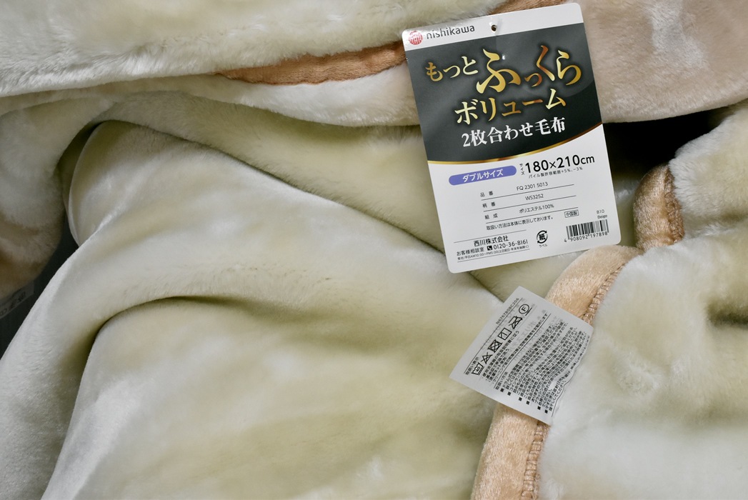 二重合わせマイヤー毛布。ふっくらボリュームで暖かです。サイズ(D) 180×210cm、約3.6kg、Made in China生地・素材生地:ポリエステル100%カラーB10ベージュ