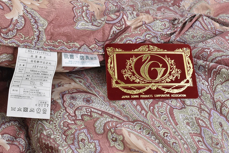 このエクセルゴールドラベルの付いている羽毛ふとんは、日本羽毛製品協同組合の品質基準に合格したものです。