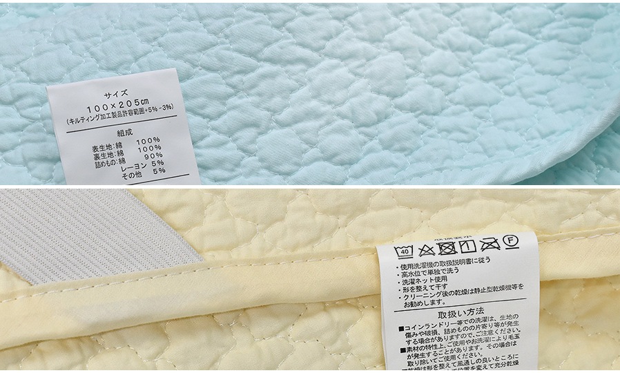 しっかりとした素材感を感じる肌掛けケットです。サイズ(S) 100×205cm、製品重量1.2kg、made in China生地・素材表生地:綿100%、裏生地:綿100%、四隅ゴムベルト付き詰めもの:綿90%、レーヨン5%、その他5%カラー2