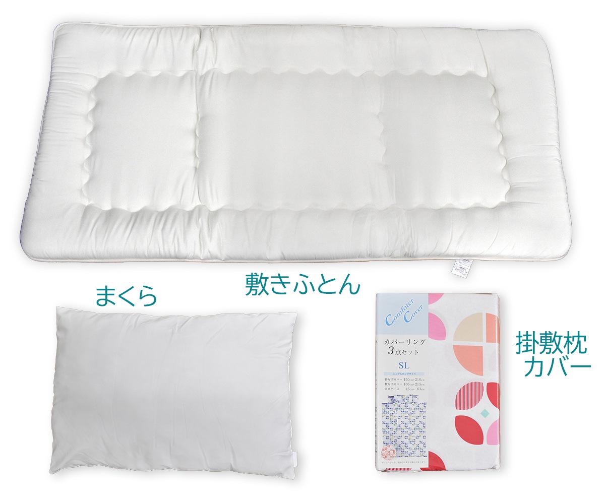 - 掛ふとん・敷ふとん・まくら+カバー3点セット