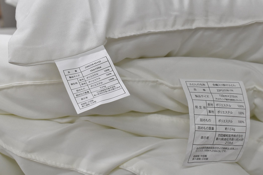 詰めもの:巻わた ポリエステル100%、1.5kg入/中層 固わた ポリエステル100%、2.0kg入